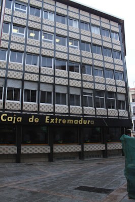 Situado justo enfrente de la oficina central de Caja de Extremadura, con su futuro también en el mercado inmobiliario, forma un triángulo con la esquina de Calzados Nati, emblemática y reconocible por sus letreros… y antigua (por vieja) en su visión.