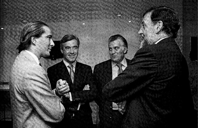 De izda. a dcha.: Urquijo (arquitecto), Acebes, Bárcenas y Rajoy, demostrando que no se conocían de nada