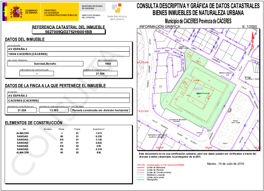 El actual y en uso Hospital Provincial tiene una superficie construida, según el catastro, de 21.024 m2. Muchos metros. Y meter allí las oficinas provinciales resultaría que estarían bailando.