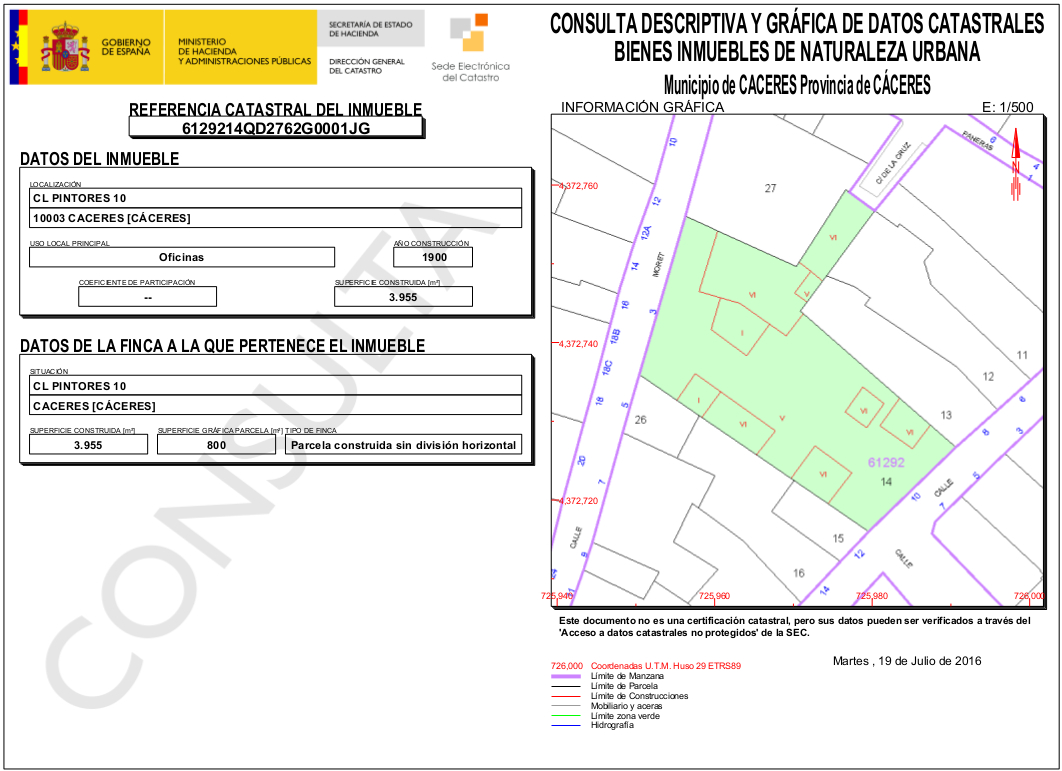 Veamos un sencillo cuadro de superficies construidas, según Catastro: