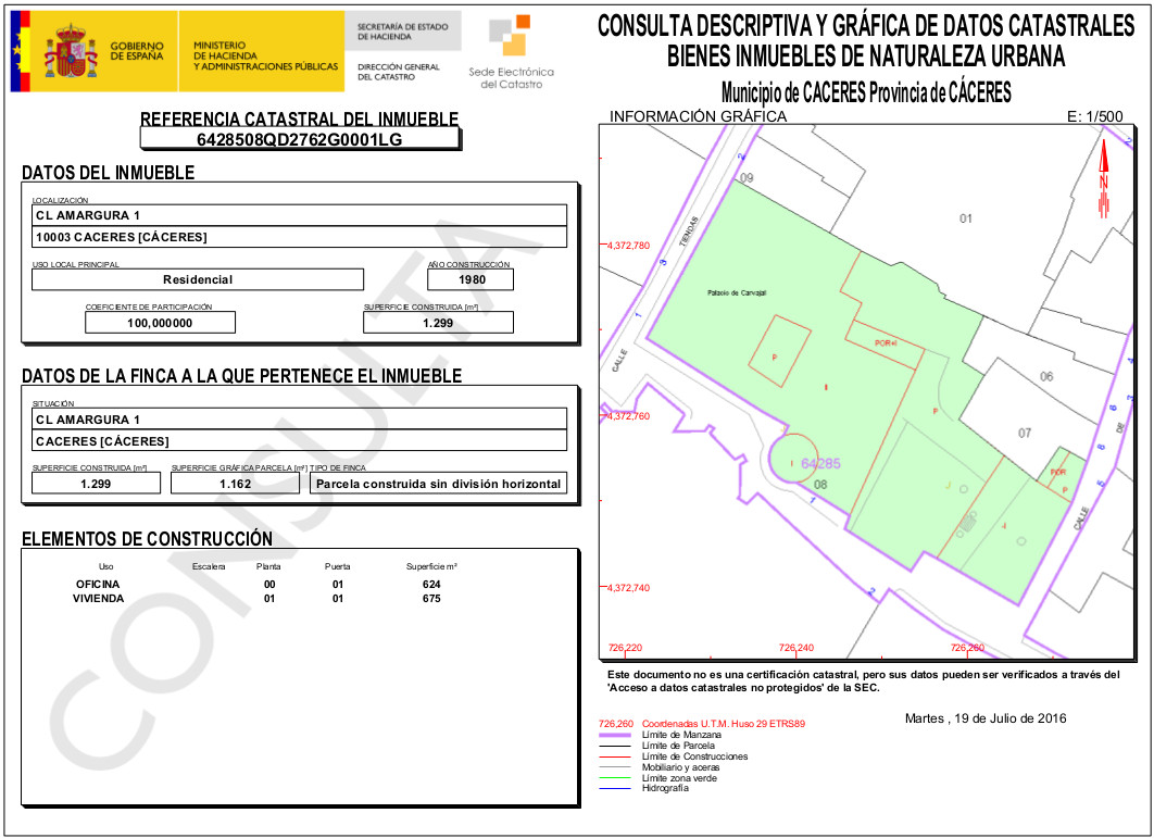 Palacio de Carvajal. 1.299 m2 Antiguo Col. Julián Murillo. 3.262 m2