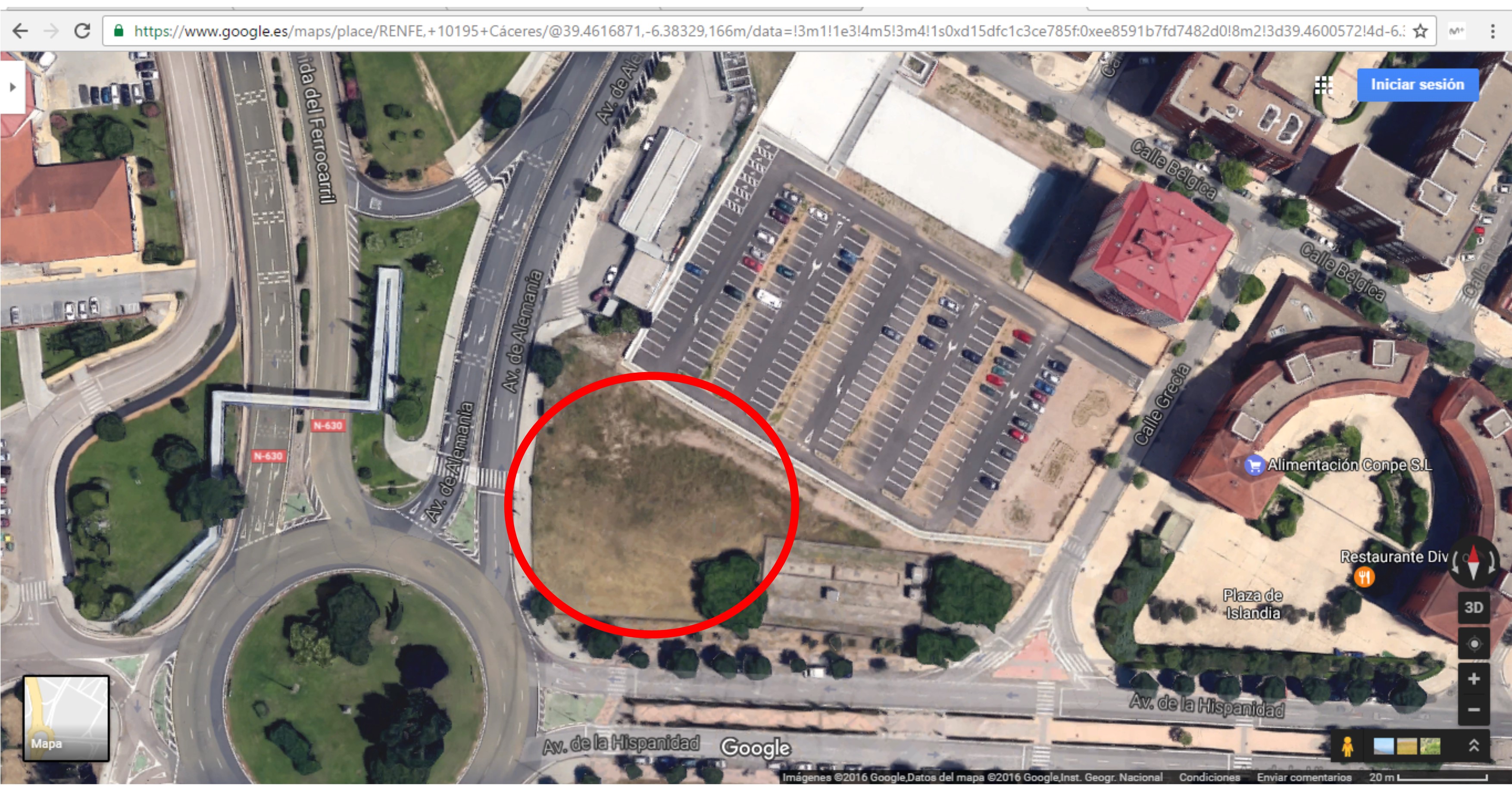 En la anterior entrada de esta serie sobre “Cáceres, cerrado por falta de uso”, me refería a un solar en Los Fratres, con fachada a Av. Isabel de Moctezuma. En esta entrada, también sobre la misma zona urbana, me referiré a una parcela existente en la otra punta, junto a la rotonda de la Estación de Renfe. Una parcela delimitada por una gasolinera y por el depósito de gas de suministro a las viviendas y negocios del conjunto residencial.