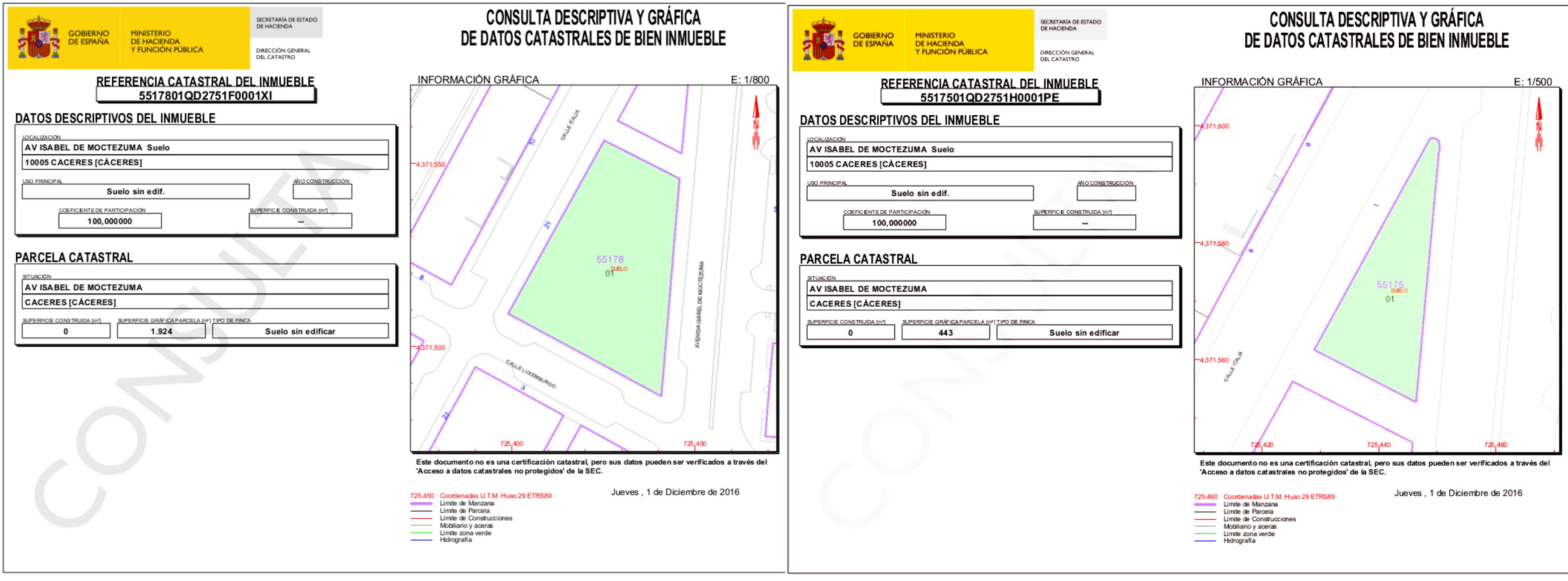 Cuando he recabado datos sobre estos terrenos me he llevado alguna sorpresa. Por ejemplo, que la parcela no existe en el catastro de urbana, al menos en el catastro virtual de acceso público, por lo que debería conocerse si se encuentra debidamente catastrada y devenga el IBI correspondiente.