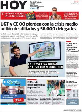 En Extremadura sucede lo mismo. Un periódico informa que los sindicatos han perdido casi medio millón de afiliados y 56.000 delegados. El medio, del grupo Vocento, achaca esos datos a la crisis y a la corrupción. No es coña, los mismos elementos, crisis y corrupción, que hacen subir al Partido Popular y seguir ganando elecciones. Algo no funciona.