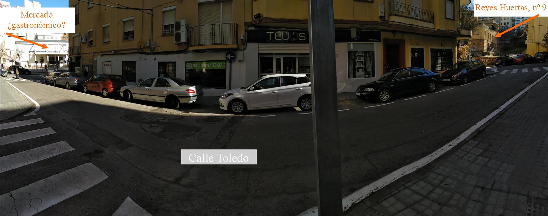 Sin embargo, desde el centro de la calle Toledo, mirando hacia la izquierda, se encuentra el mercado de abastos de Ronda del Carmen, en el que el Ayuntamiento de la ciudad (gobernado por el PP) invirtió 965.250 €, donados por el “gobierno de los mejores”, con la finalidad de reformar los puestos de los asentadores en planta baja, y en crear un espacio gastronómico en la planta alta.