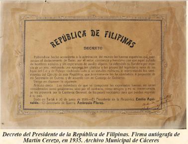 En el Archivo Histórico Municipal figuran tres documentos (dos fotografías y el Decreto del presidente de la República de Filipinas) con la firma, en Madrid, del propio Martín Cerezo en el año 1935, sin que exista otra referencia a cuál es el motivo de que esos documentos se conserven en el archivo.
