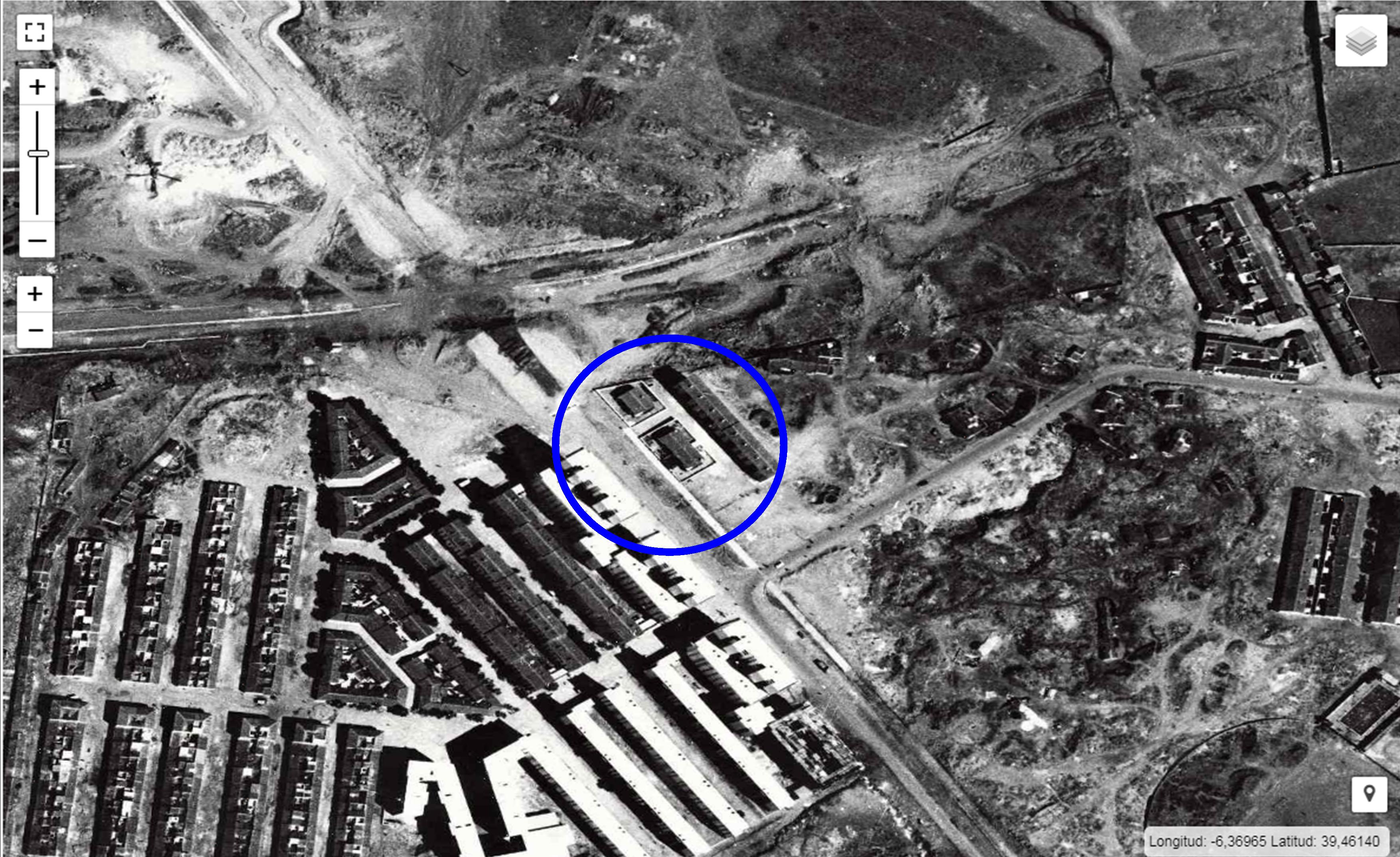 A la izquierda, 1961, en construcción. A la derecha, 1966, ya terminadas. Fuente @sig.caceres.es