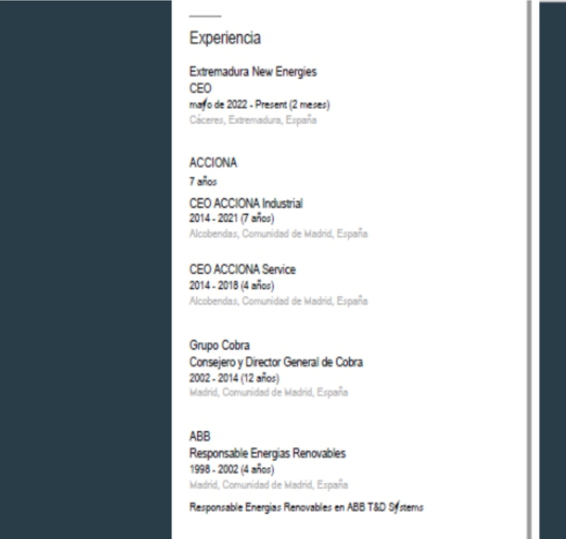CEO Extremadura New Energies Mayo 2022 – Present (2 meses). *