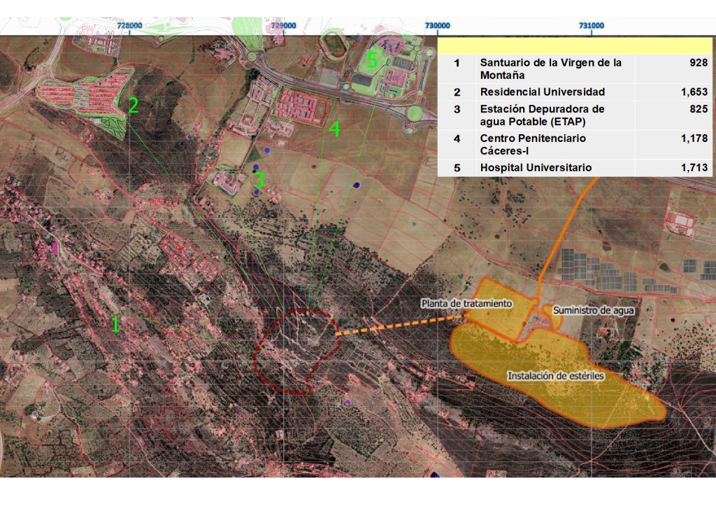Lo que sí he encontrado es una cifra que, por sí misma, invalida todo el documento y se hace acreedor de ser devuelto a corrales. Esa cifra es que la mina se encuentra a unos 3 km de distancia de la ciudad de Cáceres. Una apreciación que en un alumno de bachillerato podría entenderse, pero que en un documento, al parecer redactado por Ingenieros Superiores no deja de ser no ya una incongruencia, sino un desatino que descalifica cualquier cálculo técnico posterior, por muy bien presentado que parezca.