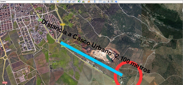 Los promotores de la mina, un grupo de especuladores australianos, han trasladado a los documentos que presentan ante las administraciones, local y autonómica, una falsedad objetiva: que la mina está a “unos 3 km del casco urbano” de Cáceres. Objetivamente, la mina propiamente dicha está a poco más de 1 km. Otra cosa es que los elementos auxiliares para el tratamiento del mineral extraído estén a otras distancias.