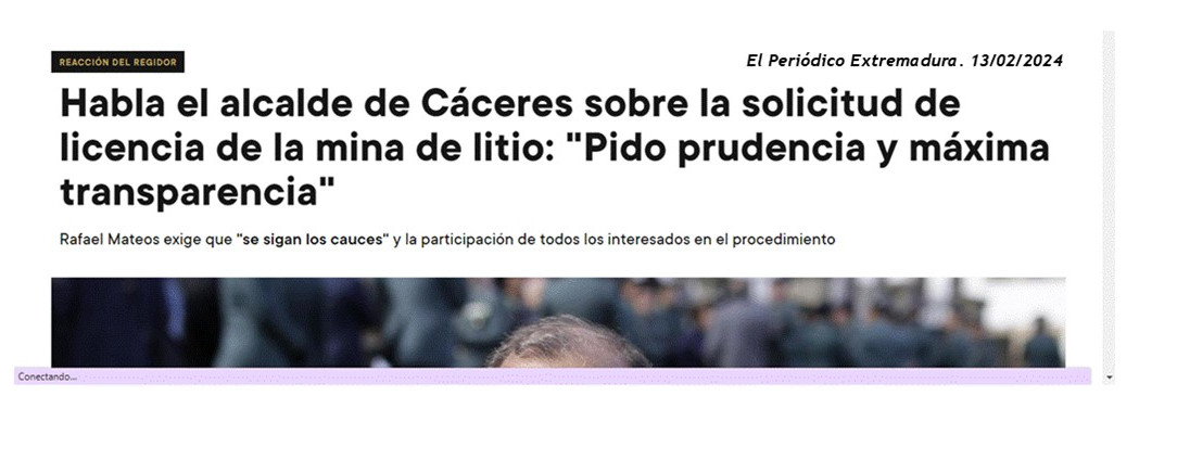 Ahora estamos pendientes de que suceda lo mismo (el tiempo no se sabe) con la petición de pase a concesión directa de la presunta mina de Valdeflores, en Cáceres capital.