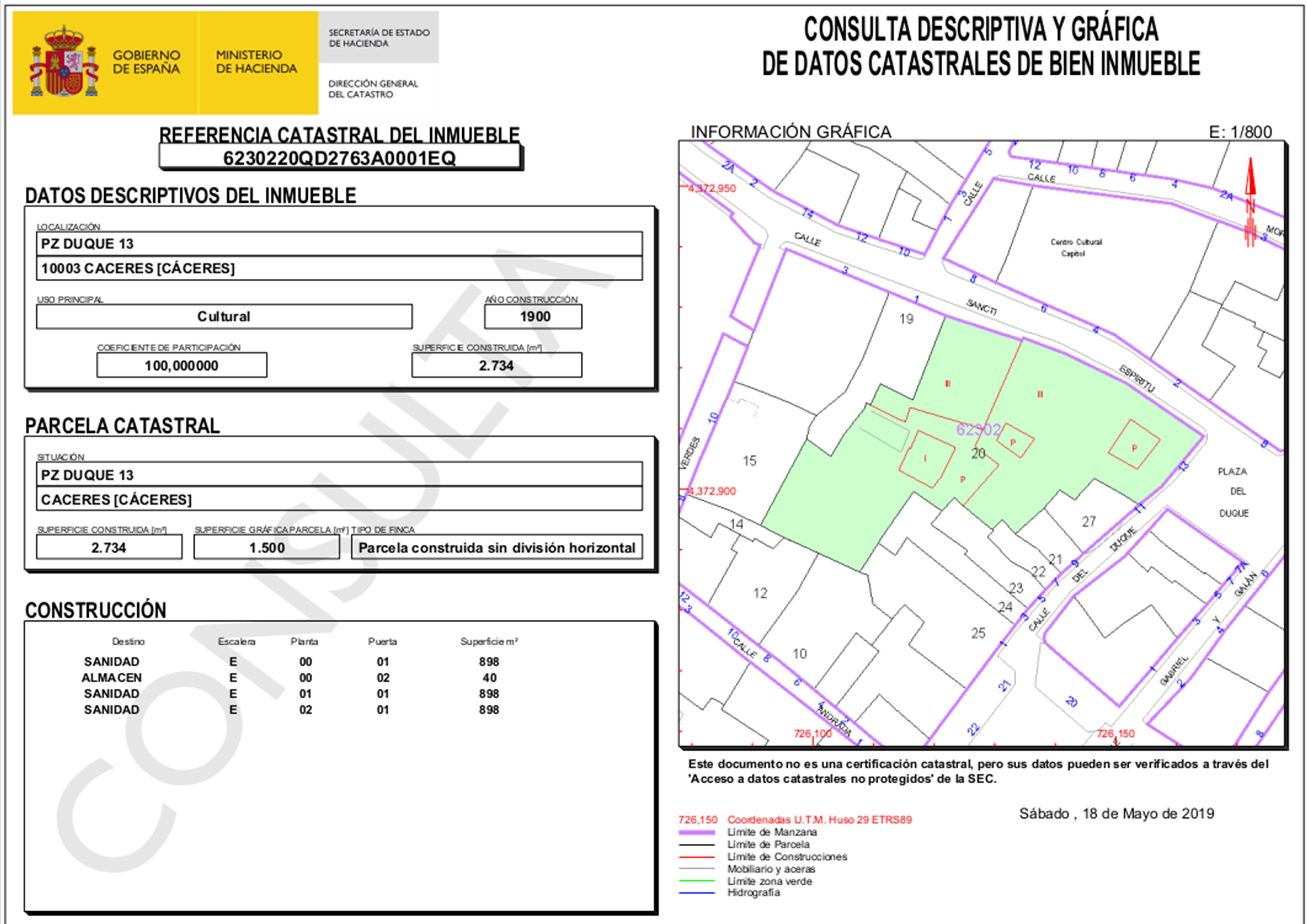2.- Ficha Catastral. Calle Margallo, 76. Cáceres