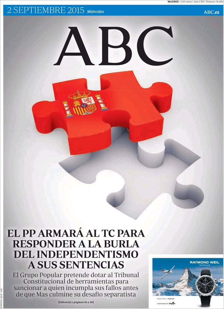 Portada de ABC de 02 de Septiembre de 2015